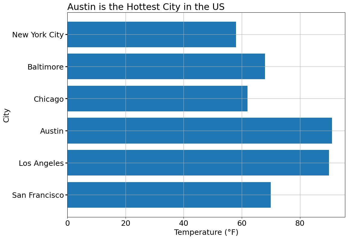 ax.set_title('Austin is the Hottest City in the US', loc='left')